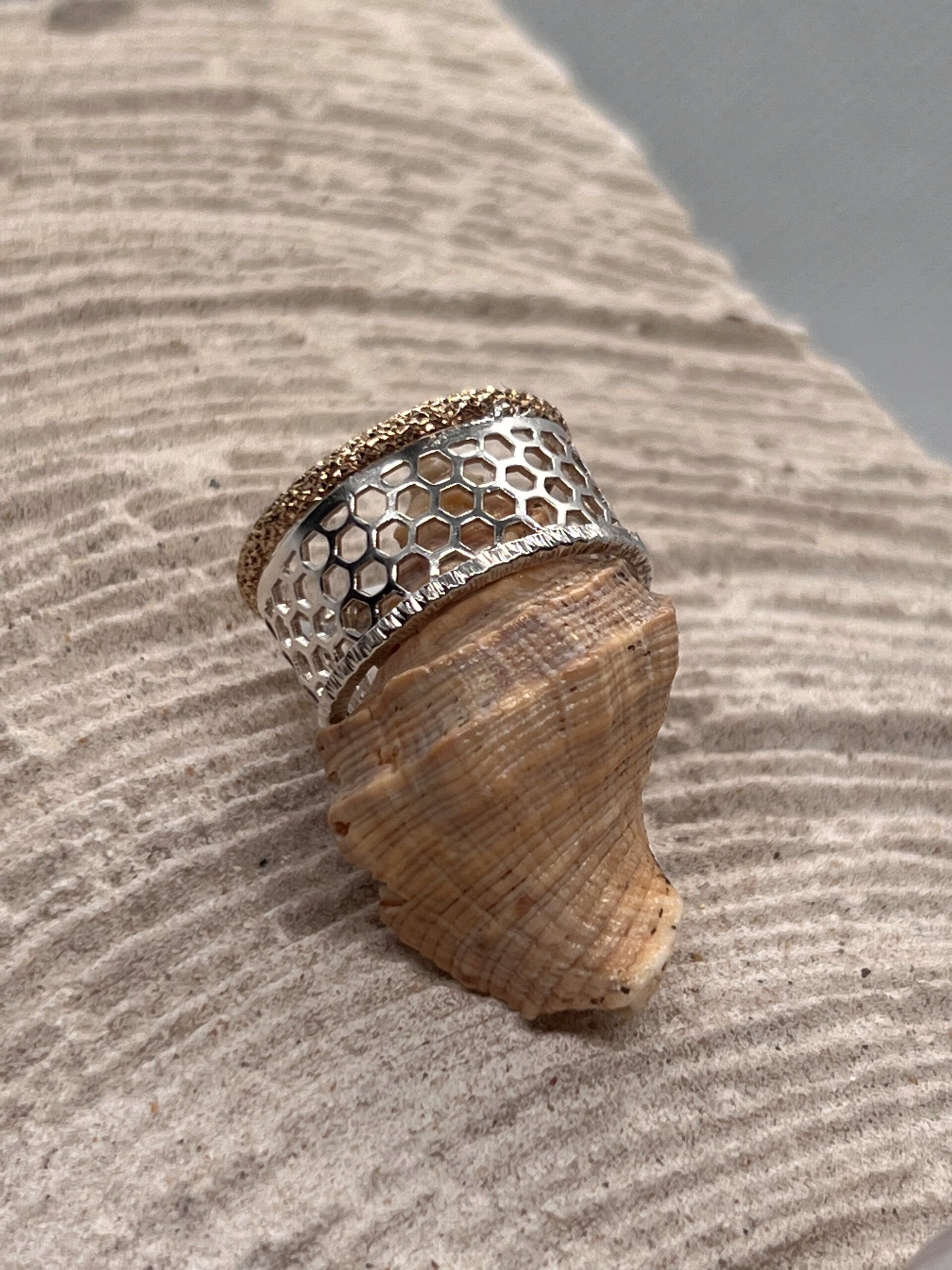 Wabenring 24 Karat Vergoldet mit Silber