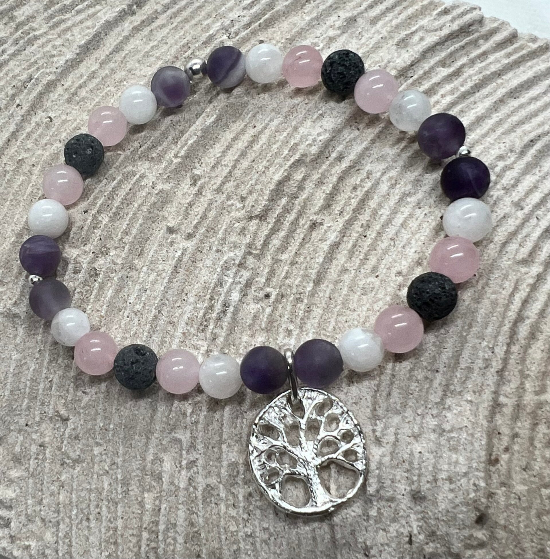 Mondstein,Amethyst,Rosenquarz,Lavastein 999er Silberzwischenteile
